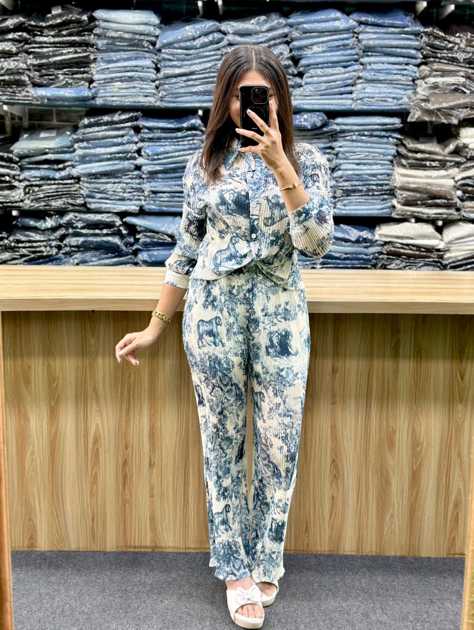 - Material & Texture: The set is made from a lightweight, soft, and breathable material like crepe, polyester, or a similar blend, which helps the permanent micro-pleating hold its shape and allows for ease of movement.
