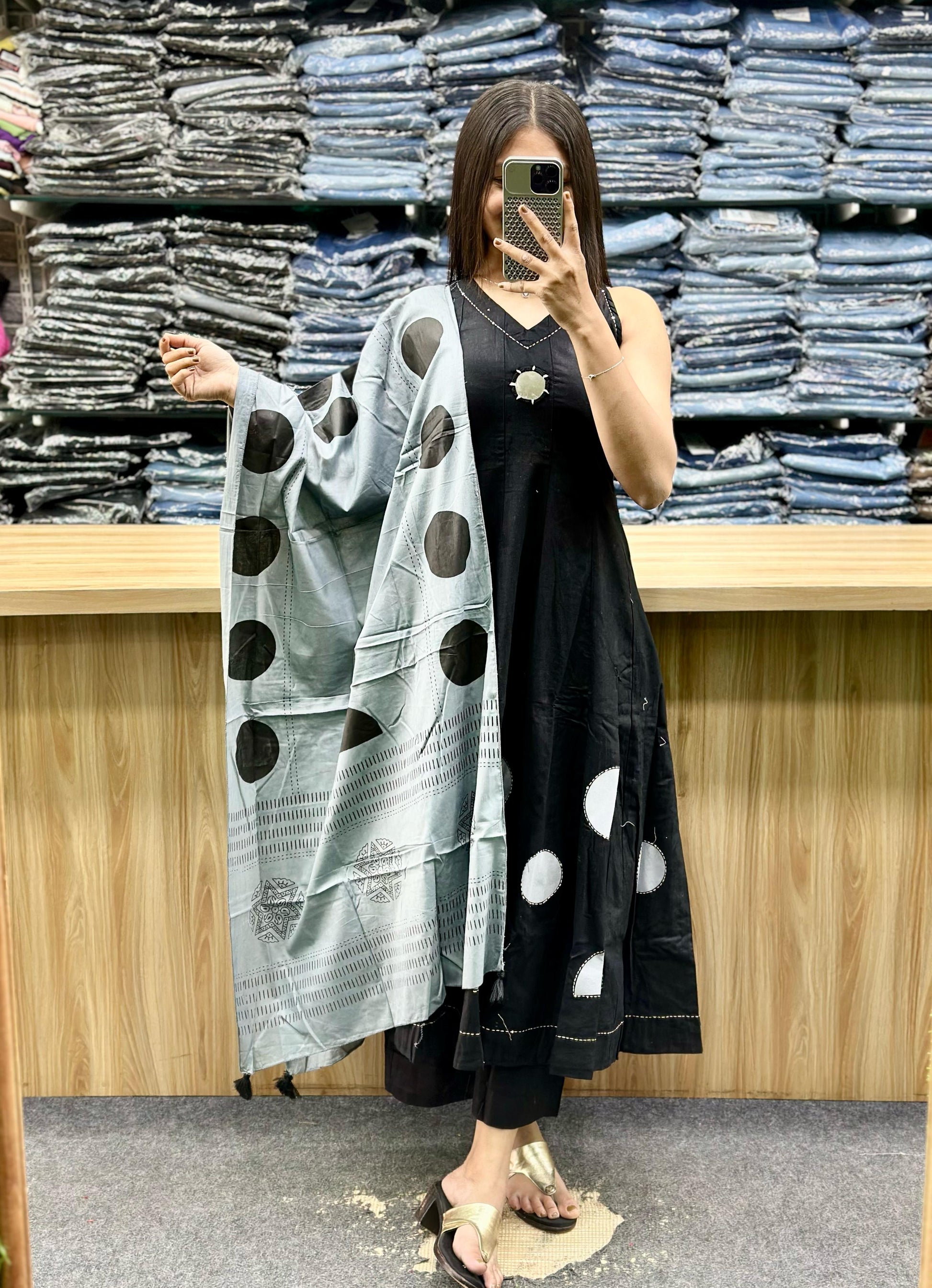 STYLE : ROUND KURTI MIROR ON CHEST AREA AND HAVE SOME SMALL PRINTS ON IT MATCHING PLAZA PENT AND PRINTED CONTRAS MATCHING DUPATTA