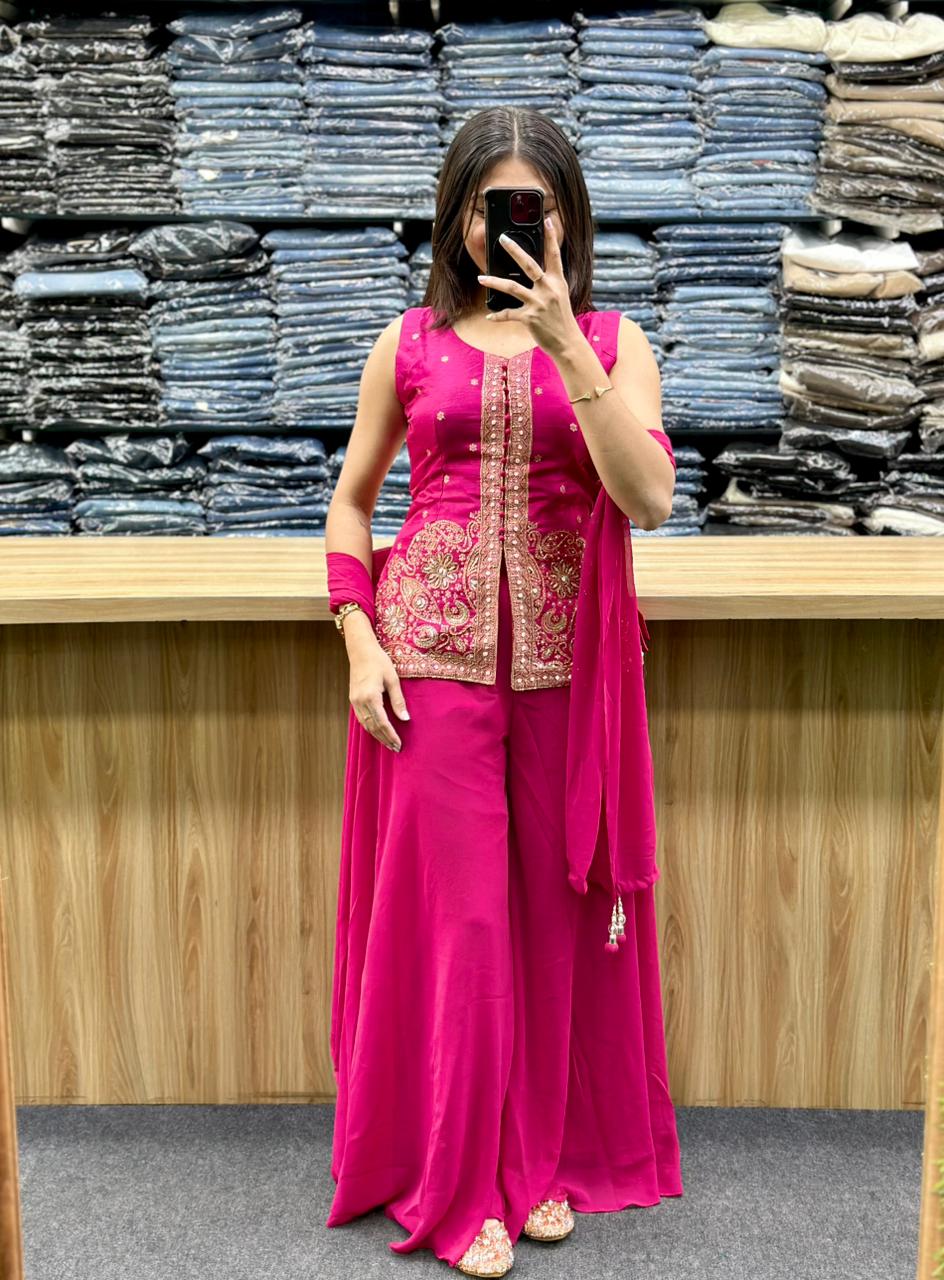 - Style: This look blends traditional ethnic embroidery with a modern, "girlish" cut, making it a popular choice for sangeets or festive parties