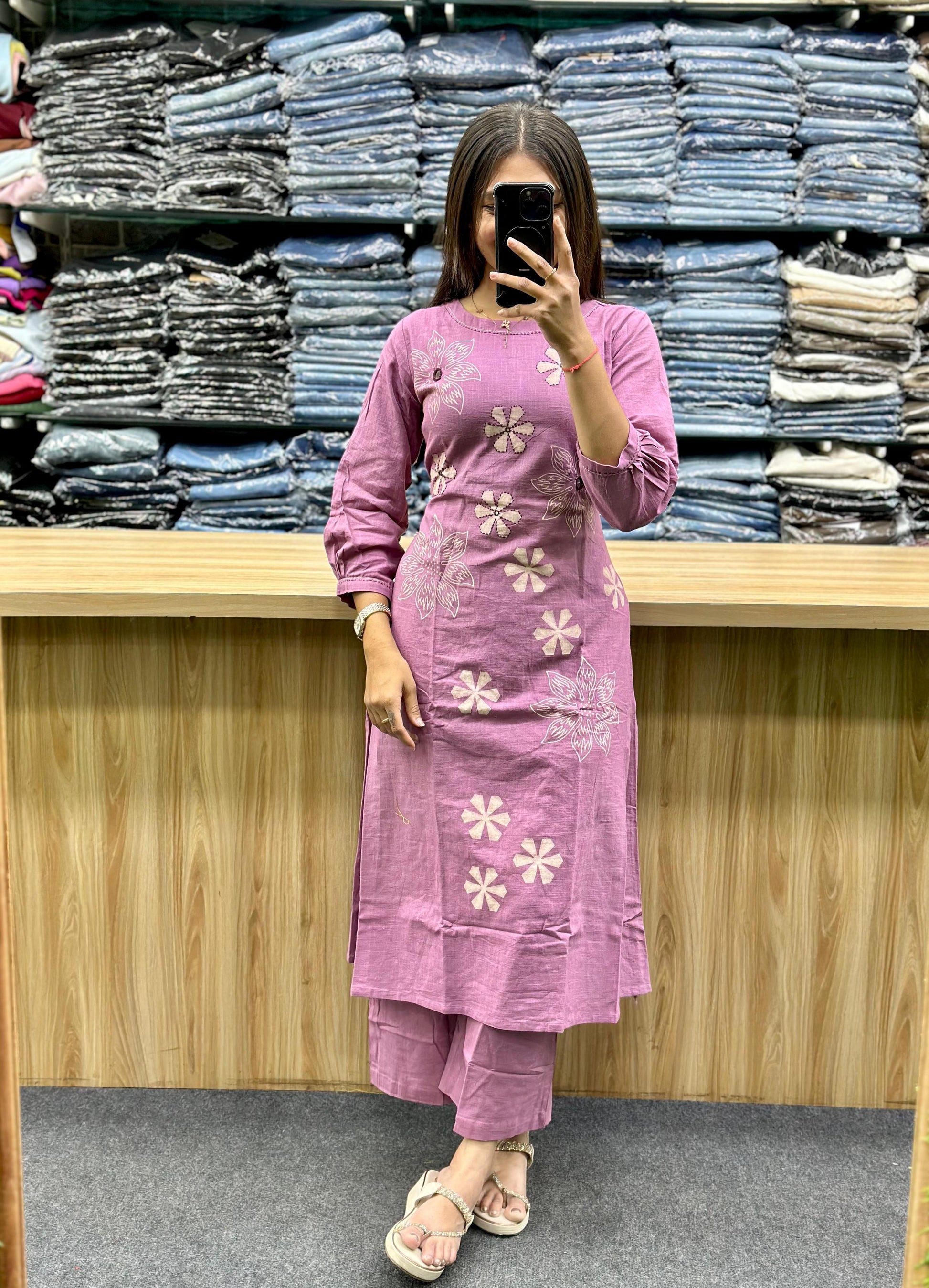 STYLE : A LINE SLITTED PRINTED KURTI AND PLAIN WIDE LEG PLAZA