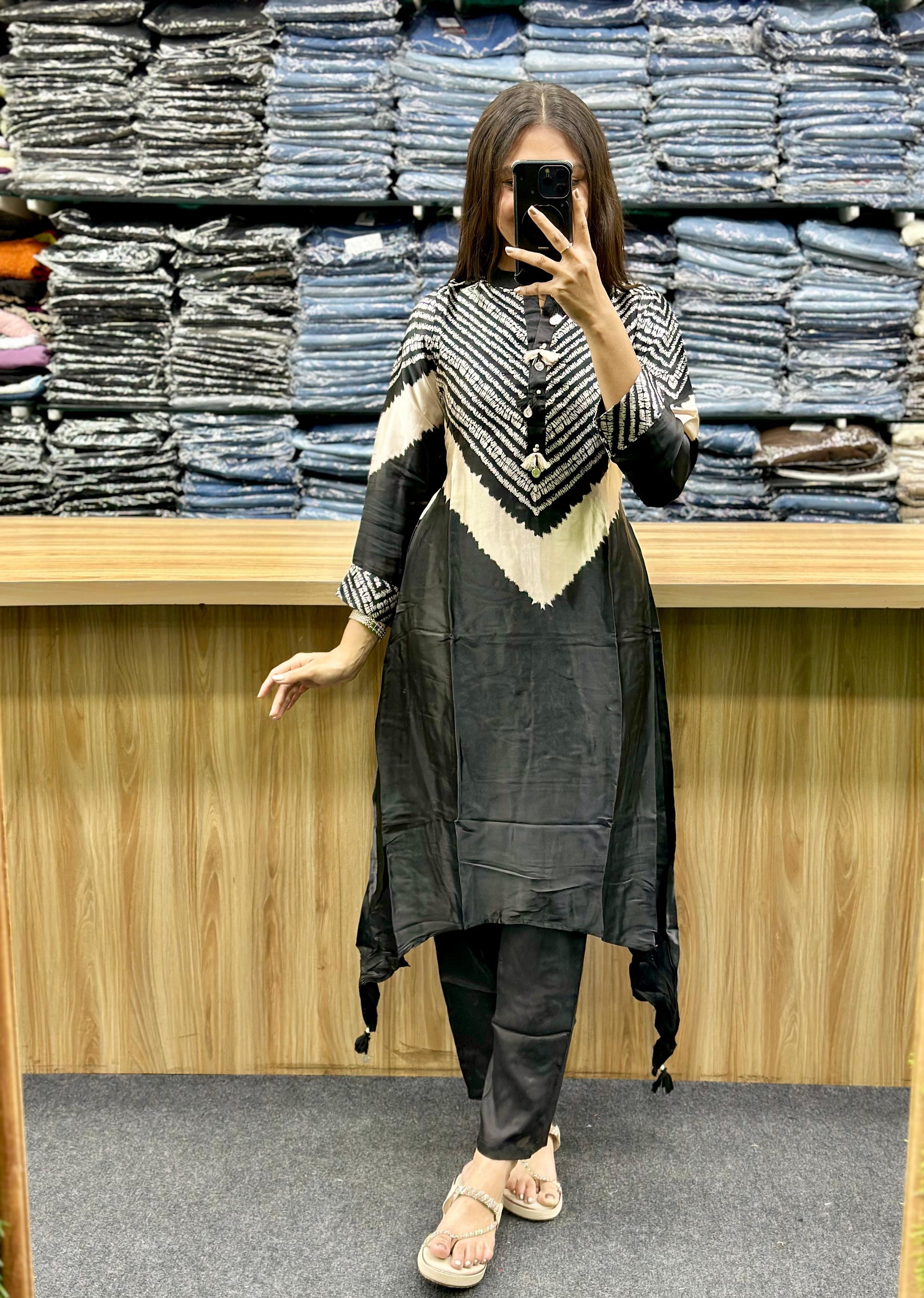 STYLE : PACK NECK A LINE PRINTED KURTI WITH LONGER FROM BOTH SIDE AND MATCHING PLAIN PENT