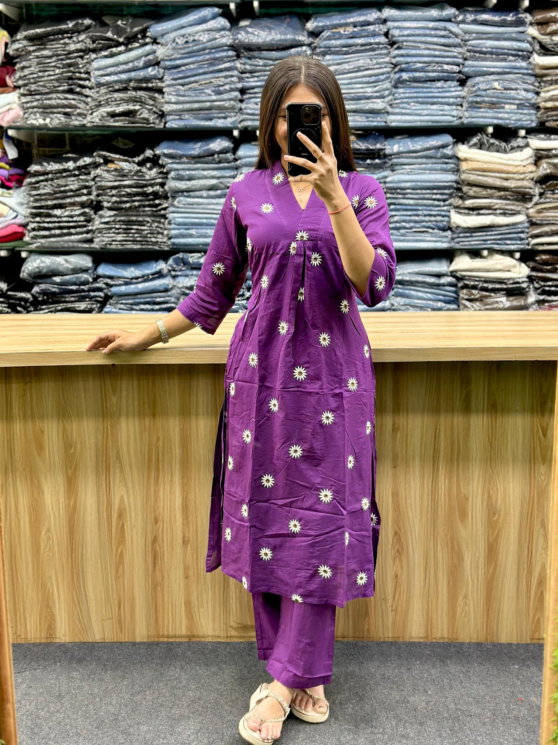 STYLE : A LINE KURTI WITH THREAD WORK IN ALL OVER THE TOP,MATCHIN PLAIN PLAZA PENT