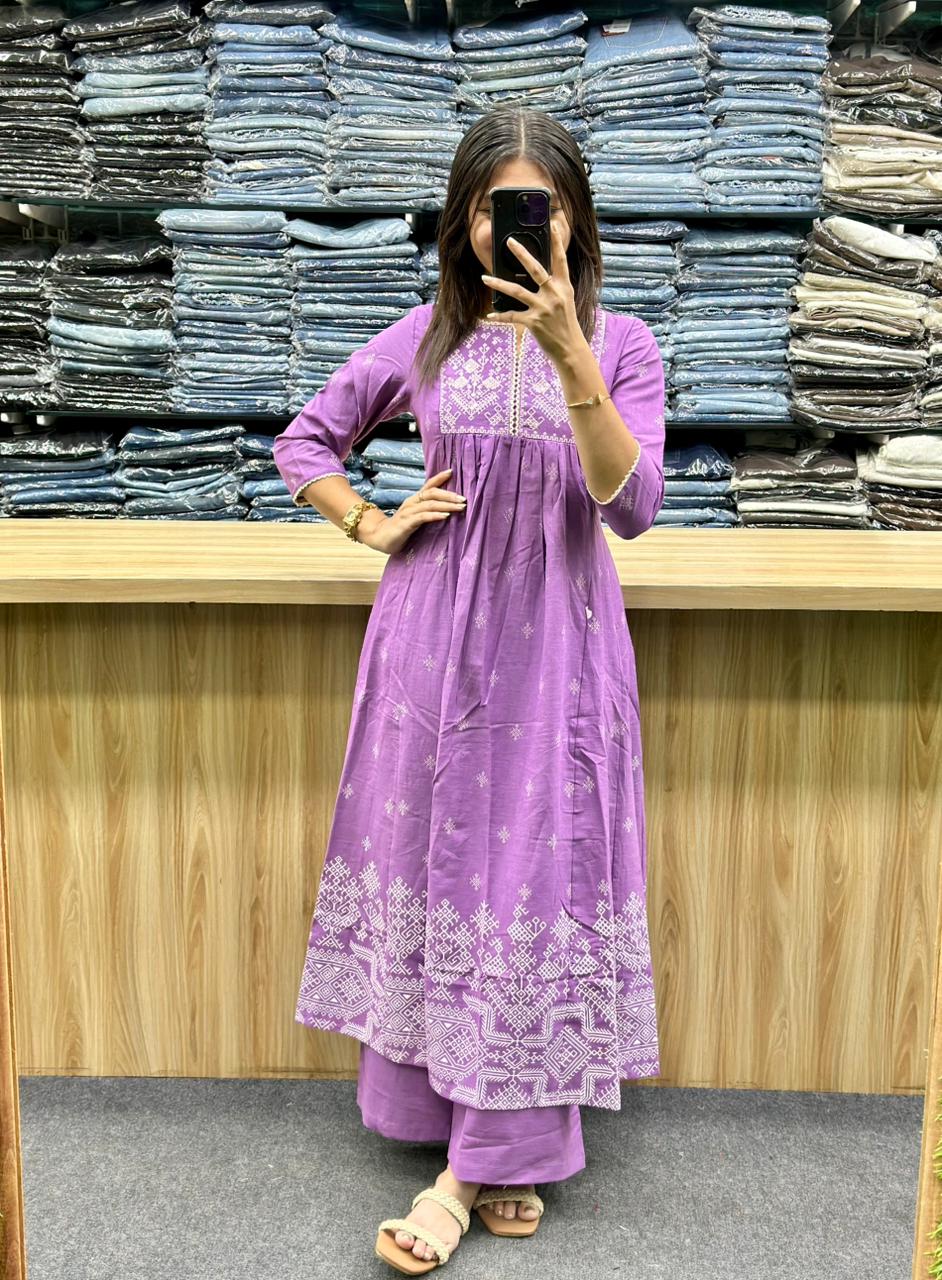 STYLE : LONG ROUND CHETOP WITH EMBROIDERY AND HAND WORK ON CHEST AREA AND DOWN SIDE BORDER OF KURTI,MATCHING PLIAN PLAZA