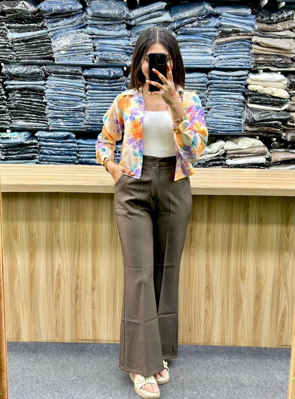 TOP :- It is styled as an outer layer over a simple white top. cropped shirt. It is styled as an outer layer over a simple white top.